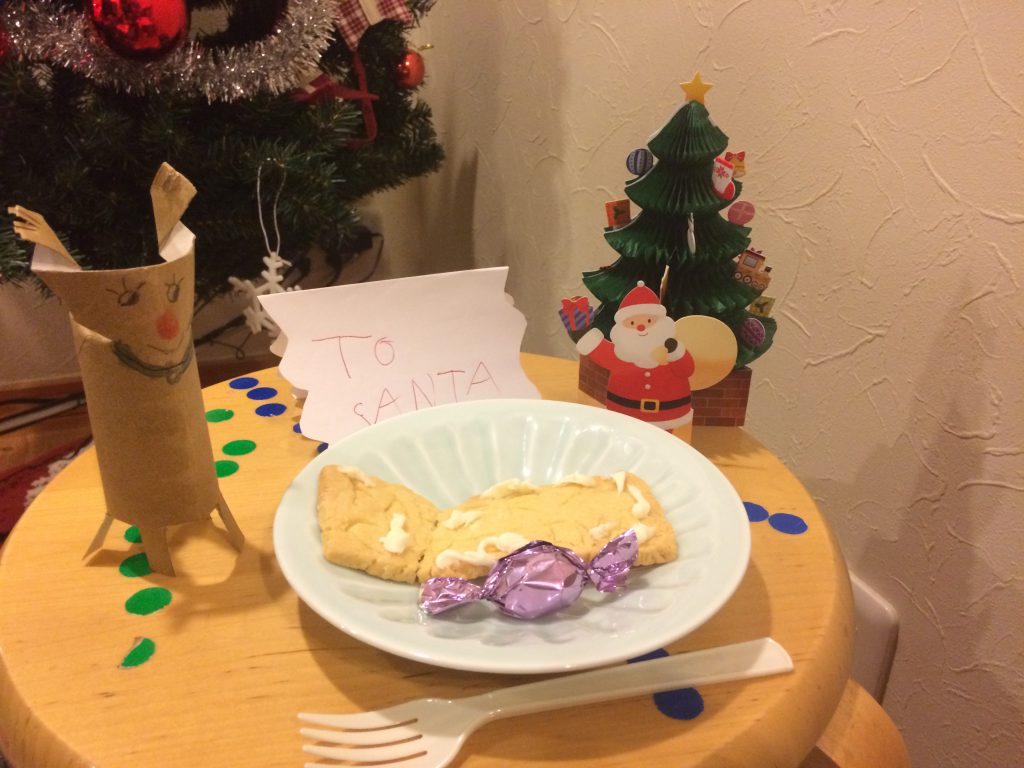 ぼくちんたちは、翌朝、ツリーの下にプレゼントがあることを想像して興奮し、なかなか寝付けない様子。また、サンタさんは、きっと色々な家を回って疲れているだろうと思慮したようで、サンタさんのためにお兄ちんの手作りクッキーと飴玉を用意し、ツリーの近くに置いていた。メモ書きにはきちんと、"To Santa"と書いてある。かわいい❤️
