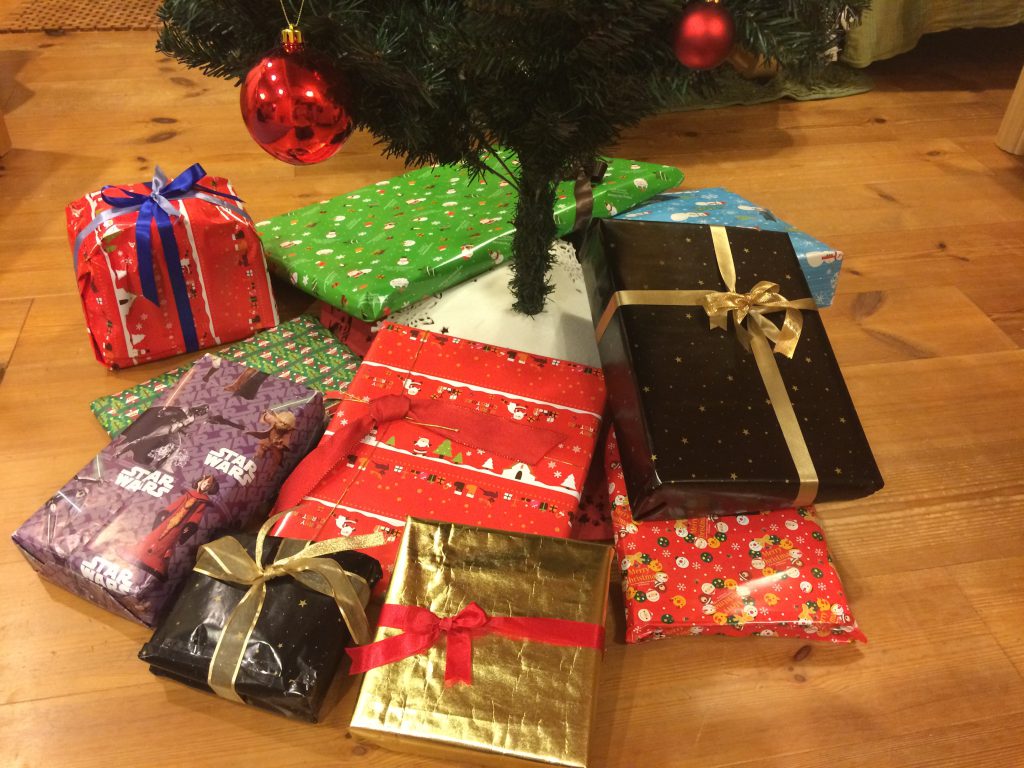 ぼくちんたちのために購入していたプレゼントのラッピング、そしてツリーの下に並べる作業。