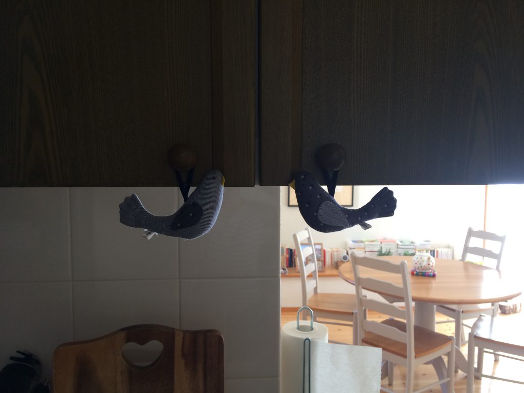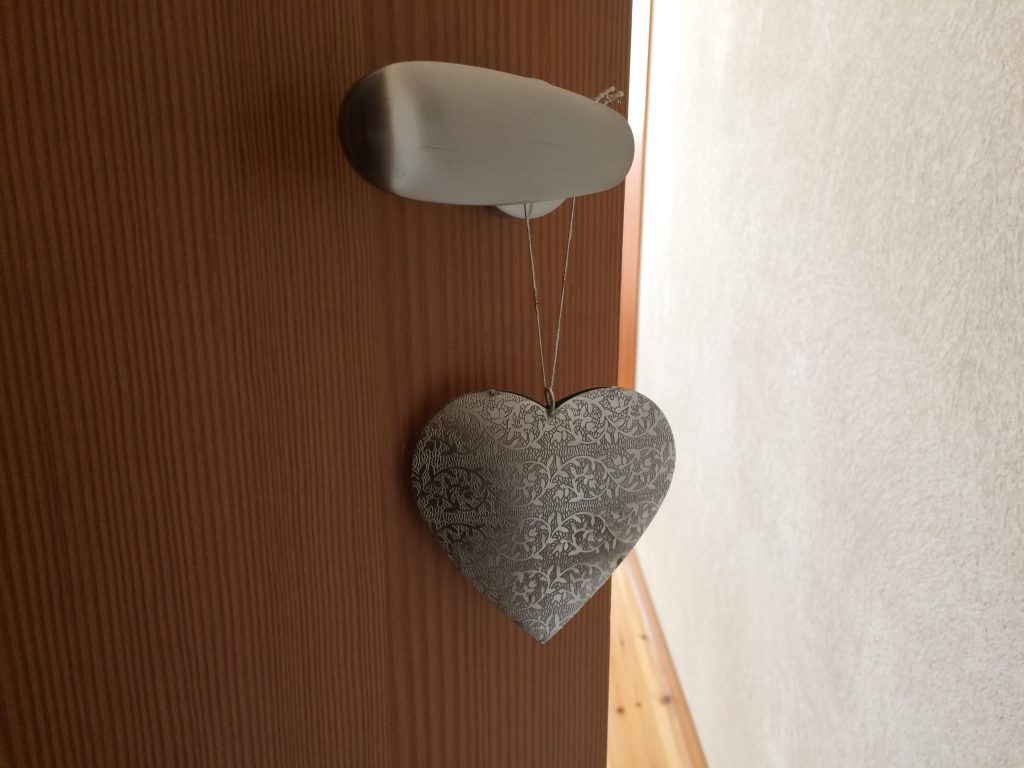 ドアのノブや持ち手にはちょっとした❤️や鳥の小物をぶら下げている。これまた勝手な思い込みだけれども、ハートのものを多く持つと、ハートが溢れてきそうな気がするし、鳥さんは幸せを運んで来そうな気がしている(笑)。