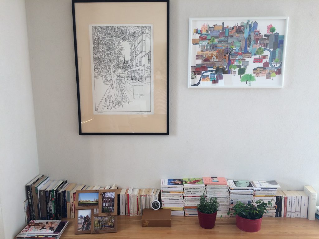 装飾については、まず、絵画!!写真好きの人なら写真となると思うけど、うちは絵!白黒のパリ、ノートルダムの絵がもともとあったので、ロンドンから出る前に、是非ロンドンの絵も欲しいと思い、これまた一目惚れした絵をV&A美術館でゲット!ちなみにこのV&A美術館は、ママンがロンドンで一番好きな場所と言っても過言ではないほど、大好きな場所の一つ。時々ピアノの生演奏をしている超素敵なカフェ(カフェランチも実はとてもおいしい!)があったり、素敵な中庭、中庭に続く廊下に展示された彫刻たち、洋服の歴史の展示、そして素晴らしいデザインに出会える楽しいおみやげショップ。