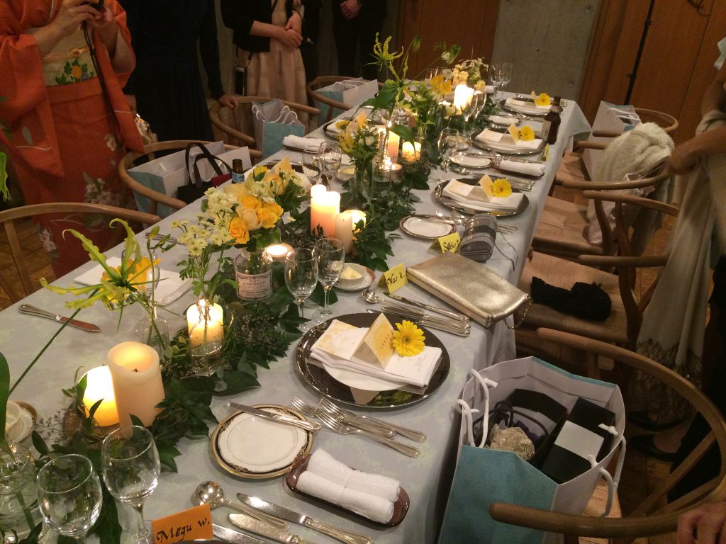 さて、あたたかで楽しげなセレモニー、そして素敵なフラワーシャワーの後、室内に移動し、”披露宴”が始まった。