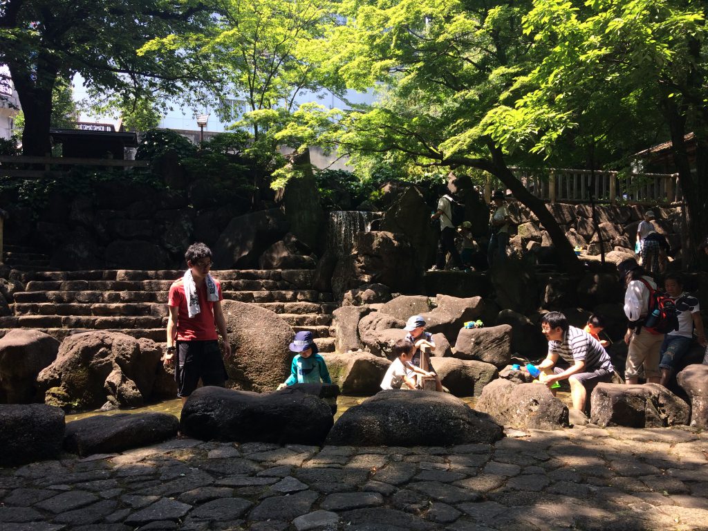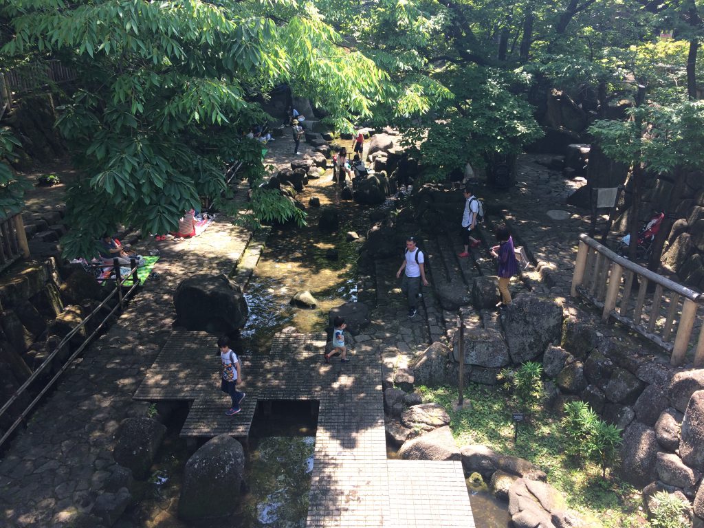 日向はもちろんそのうち堪え難い暑さなのですが、日陰はまだまださわやかな涼しさを保っています。そしてこの公園、なんと、土日限定で小さな滝を流しているので、ザーザーと滝の流れる涼しげな音を楽しみながらピクニックができるのです!