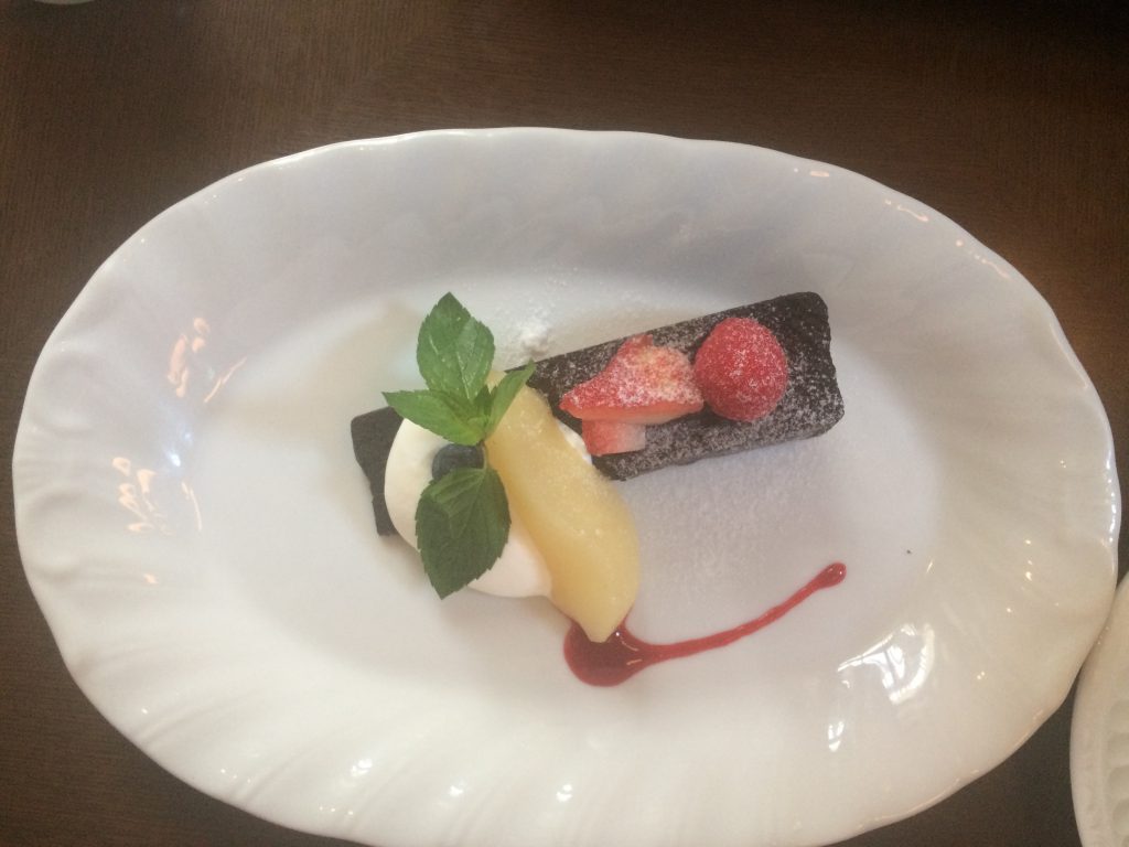 と腹8分目。ここで終わりにしておけばよいものの、ついつい隣の女性が食べていたデザート、ガトー・オ・ショコラが気になってしまい、注文してしまった(涙)。