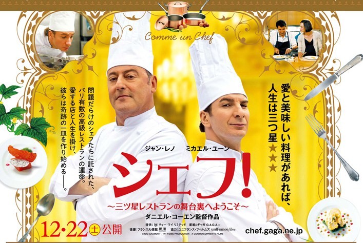 ジャン・レノが三ツ星レストランのシェフを務め、20年来の三ツ星を守るために奮闘するお話。自身がスランプに陥ってしまい危機にたつレストラン。そんな時に、素人だけれど天才的シェフ、またその愉快な仲間たちに出会い、レストランを守るために立ち上がる!その奮闘の舞台が面白ろおかしく、そして危なっかしく、ついつい笑ってしまうのだ。お気楽な気分で楽しめる映画です。