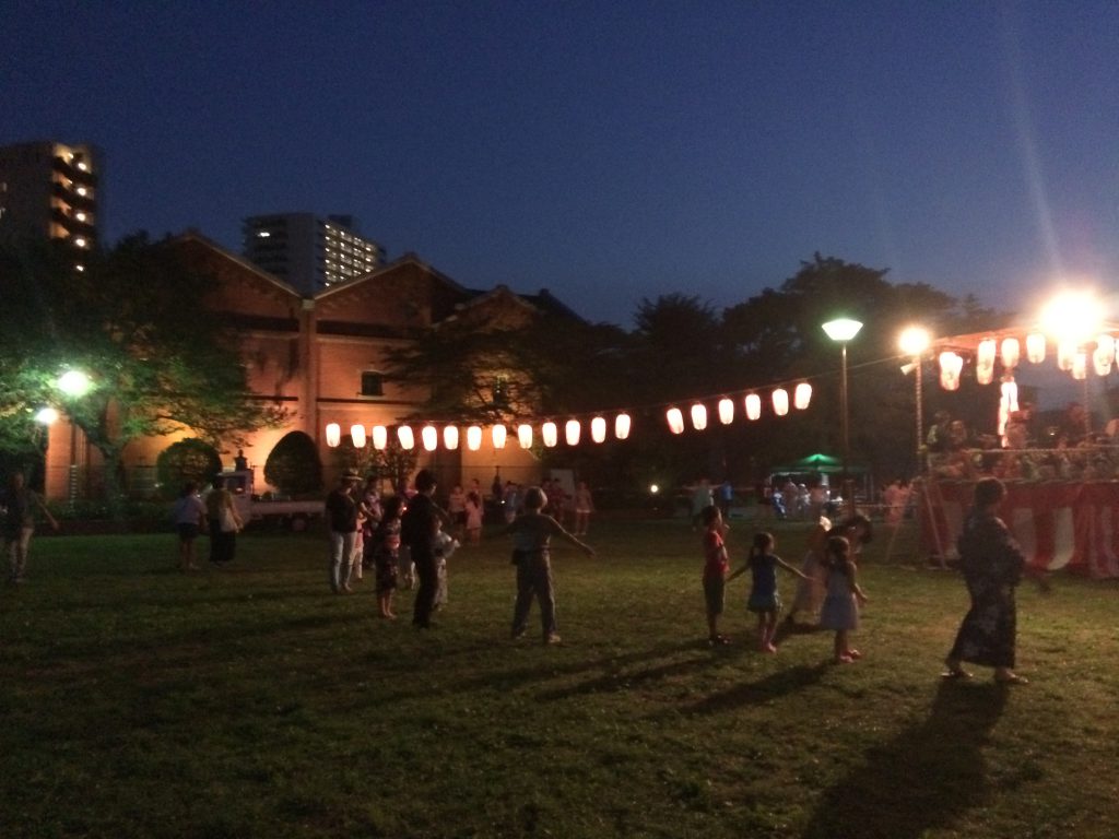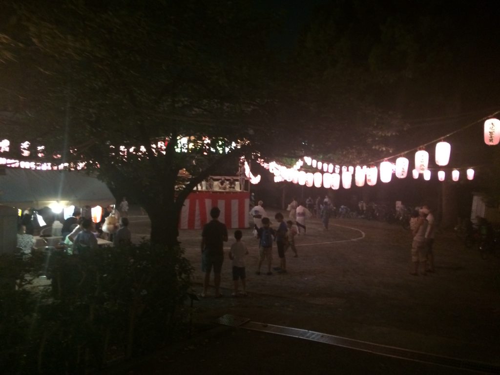 夕涼み会や盆踊り祭りでの、和太鼓の図太い音色や淡い提灯、そして縁日の雰囲気がとても特別で素敵に感じたようで、夫や、一緒に出かけたフランス人ファミリーは何枚も写真を撮っていました。