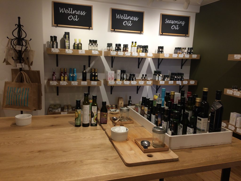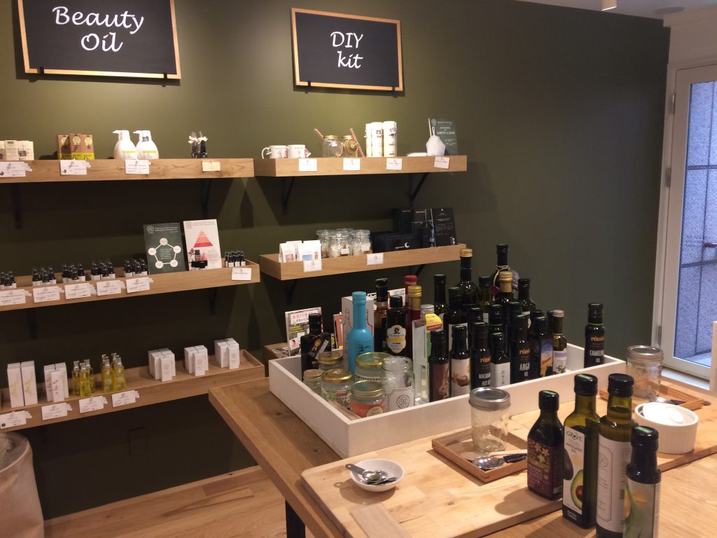 食用オイルのセクションと美容オイルのセクションとが分かれていて、それぞれに数十種類のオイルがかわいく並べてあります。