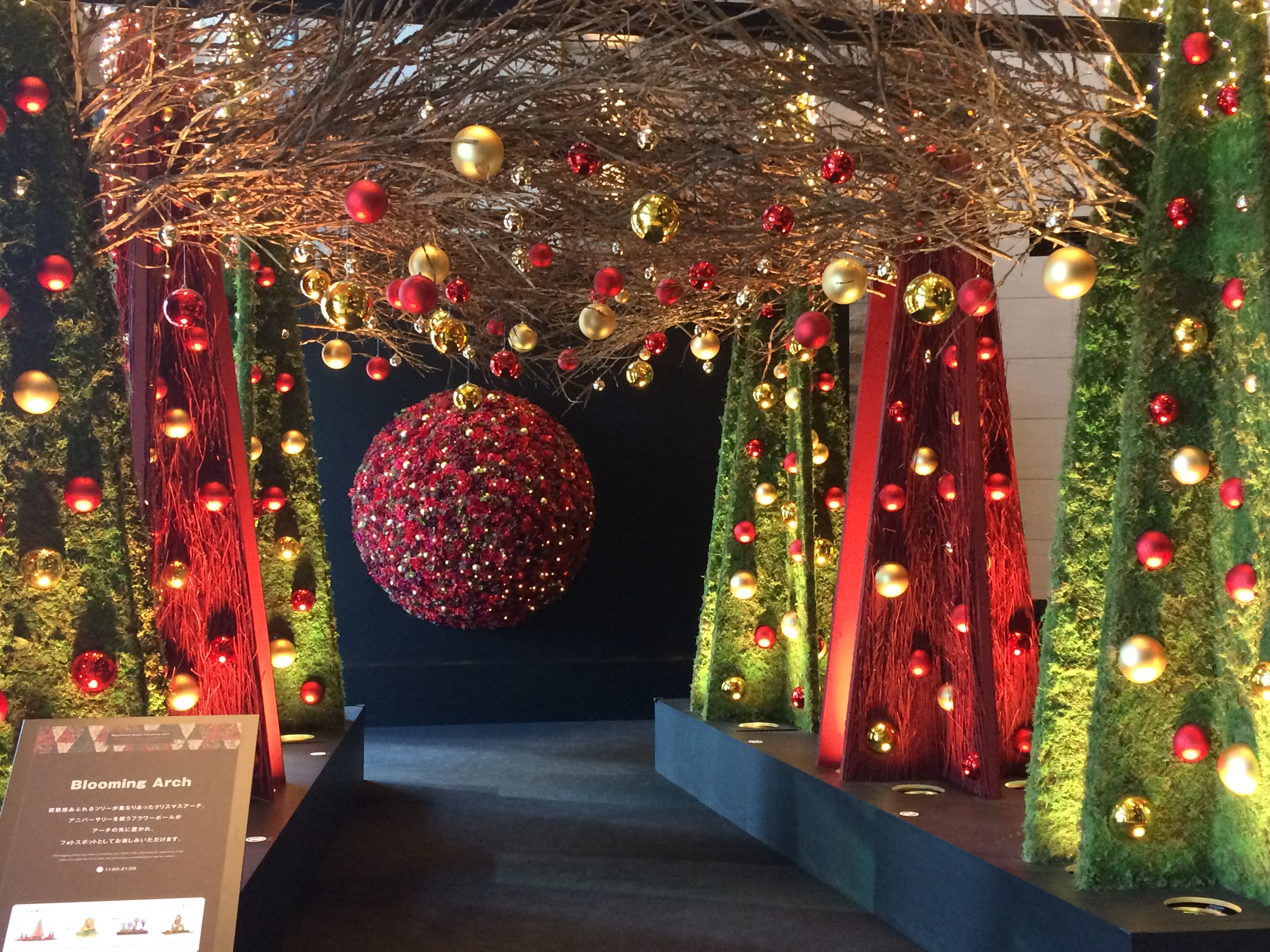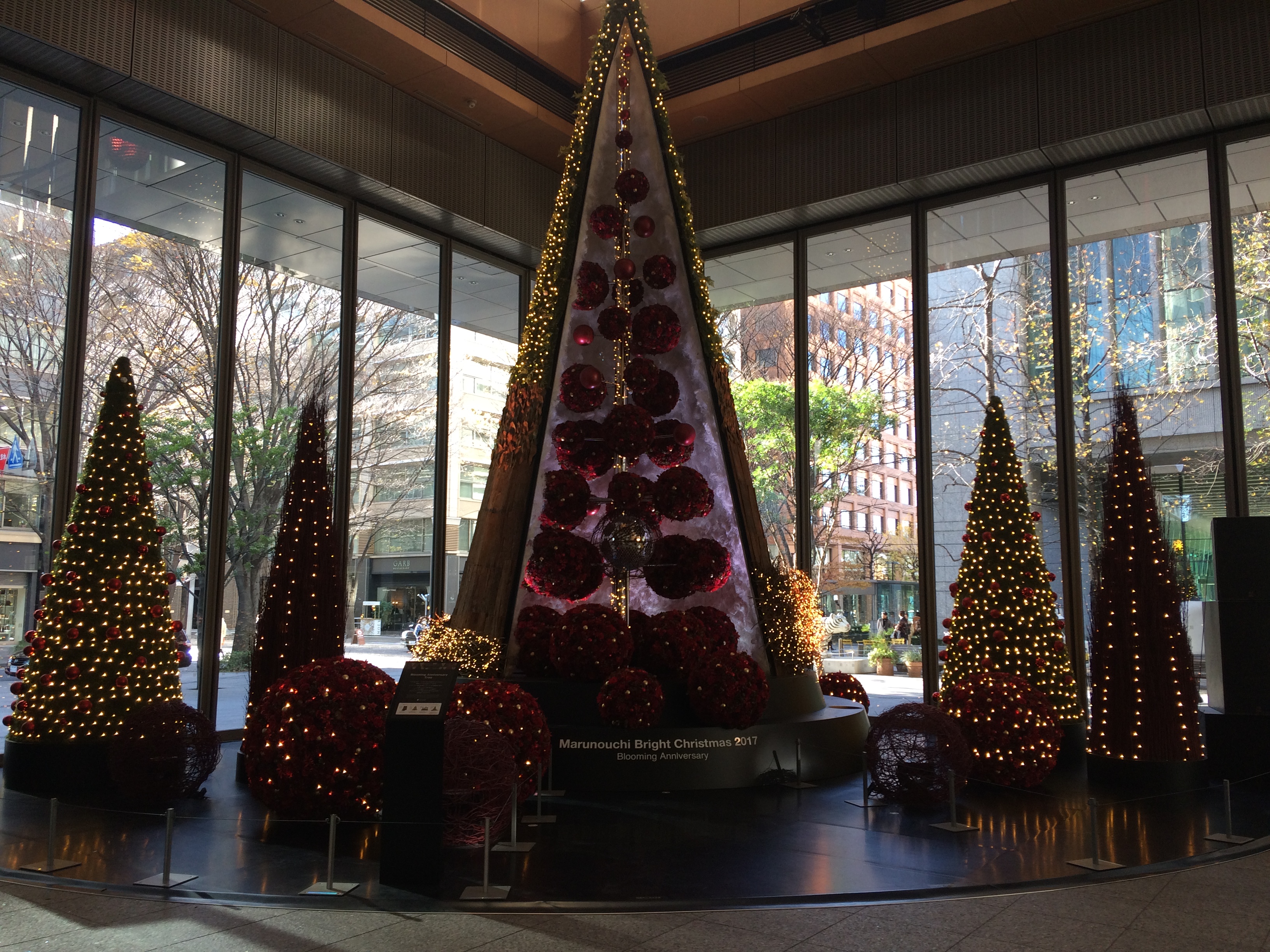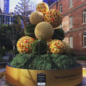 ここで初めて案内が目に入り知ったのですが、11月半ばからクリスマス直後まで、「Marunouchi Bright Christmas 2017~Blooming Anniversary~花で彩るクリスマス」というイベントの一環として、ニコライ・バーグマン氏のデザインと、空間デザイナーの長谷川喜美氏のコラボで創られたクリスマスオブジェが、丸の内エリアにいくつか展示されている、とのこと。