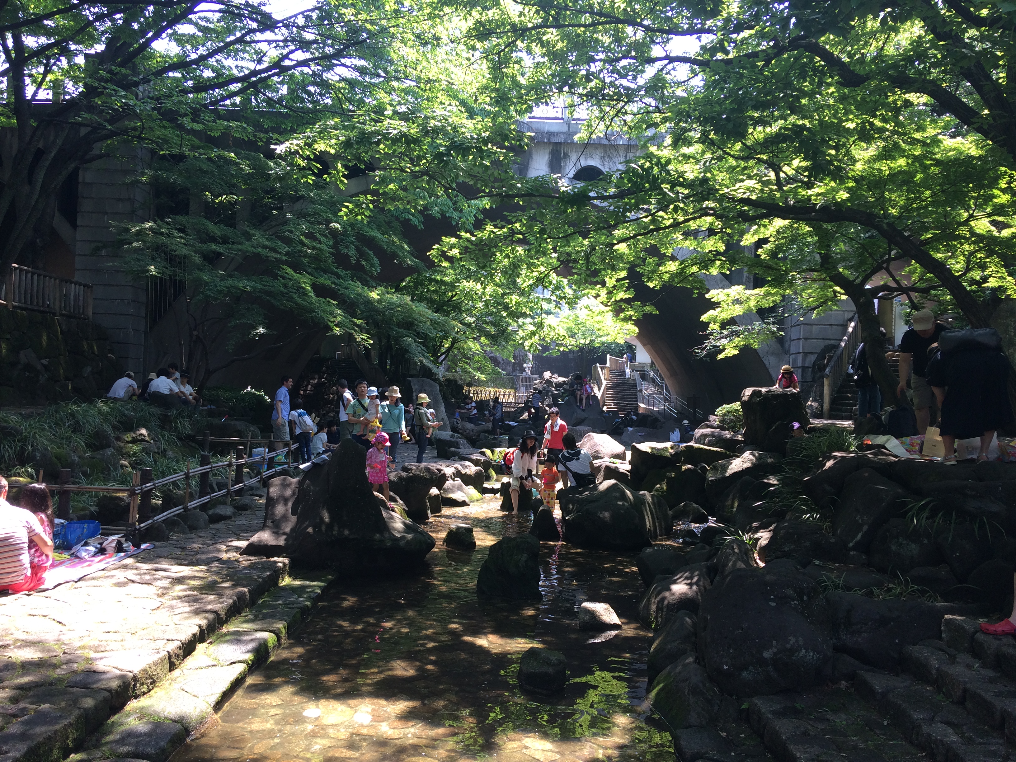 舟串橋を始めとして、江戸の雰囲気が再現された美しい”和”な公園。桜とのハーモニーが”いとをかし”な世界を醸し出しています。そして今年から夜のライトアップも始まりました!ちなみに夏には水遊びもできるので、子供たちにはたまらない公園です。