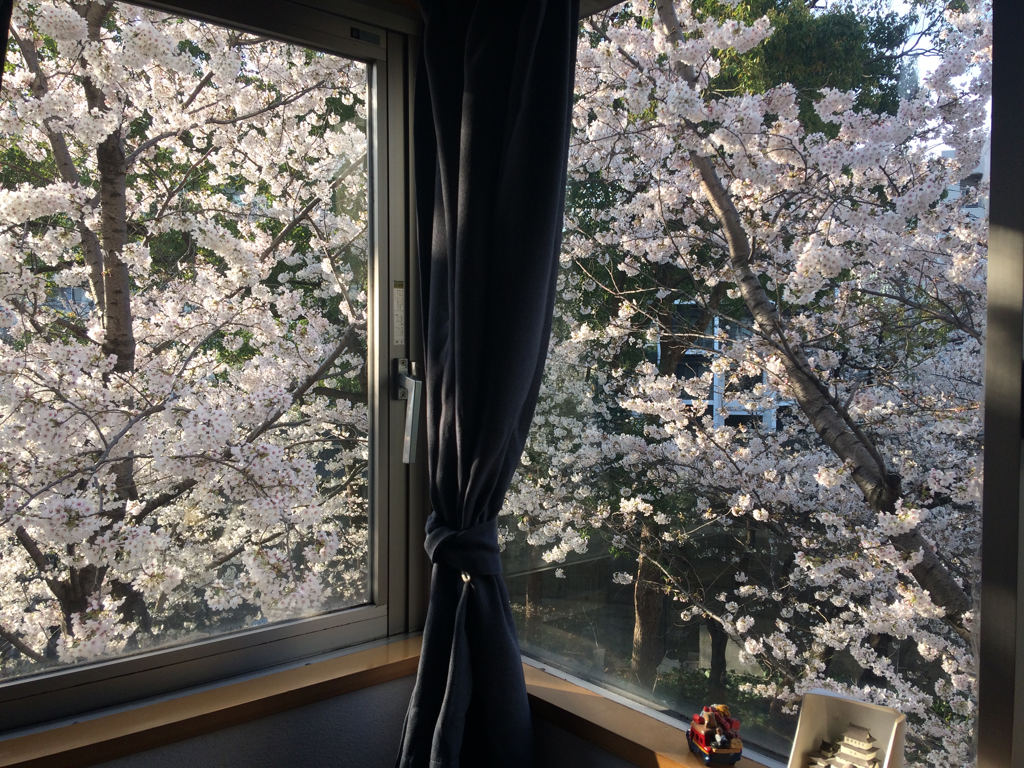 毎年およそ2週間限定ではあるけれど、夜は白く輝く夜桜を見ながら眠りに落ち、朝は優しく微笑む桜を見上げながら目を覚ます。