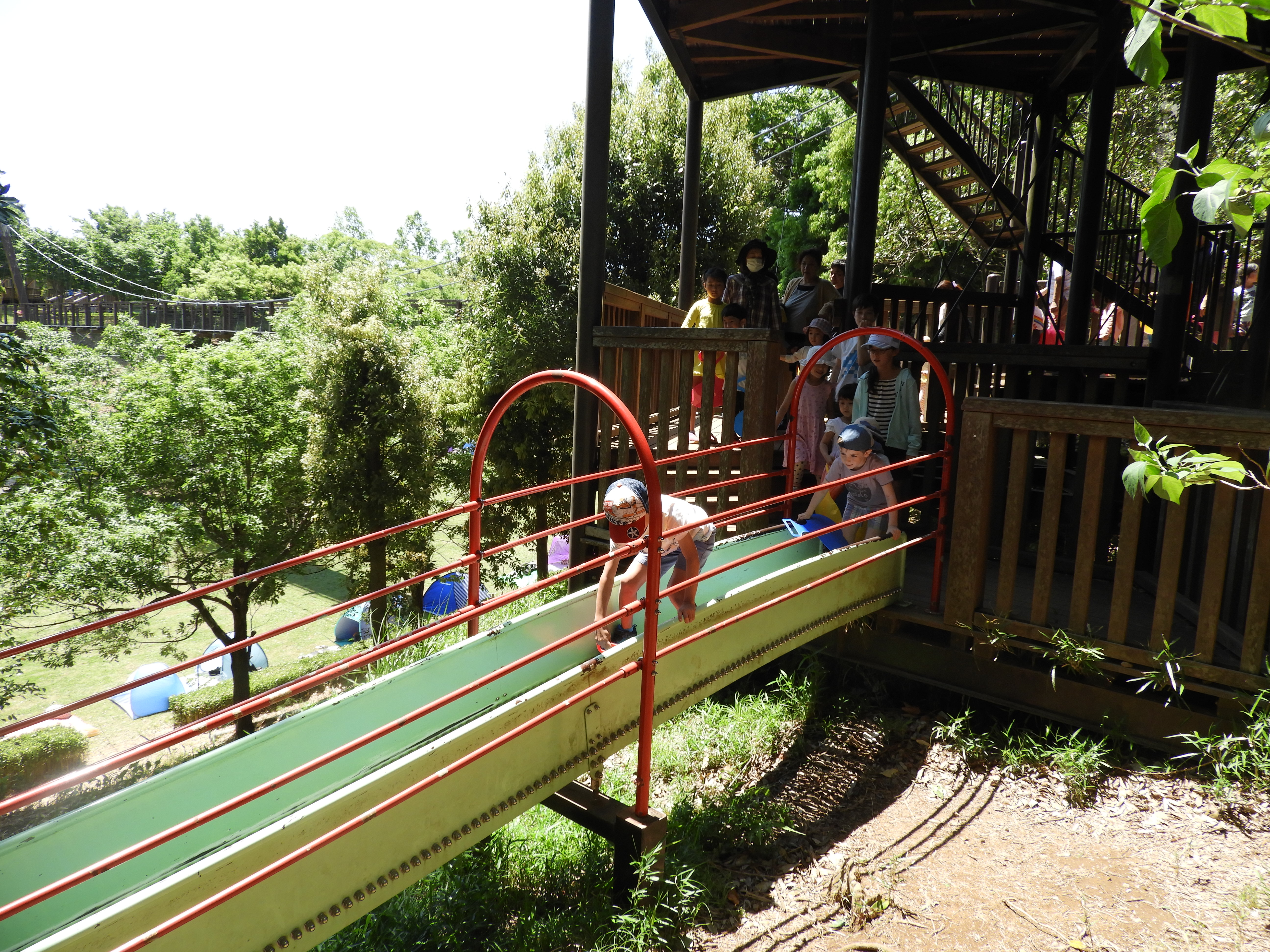 坂田が池公園には、森の中を滑る巨大な滑り台がある。