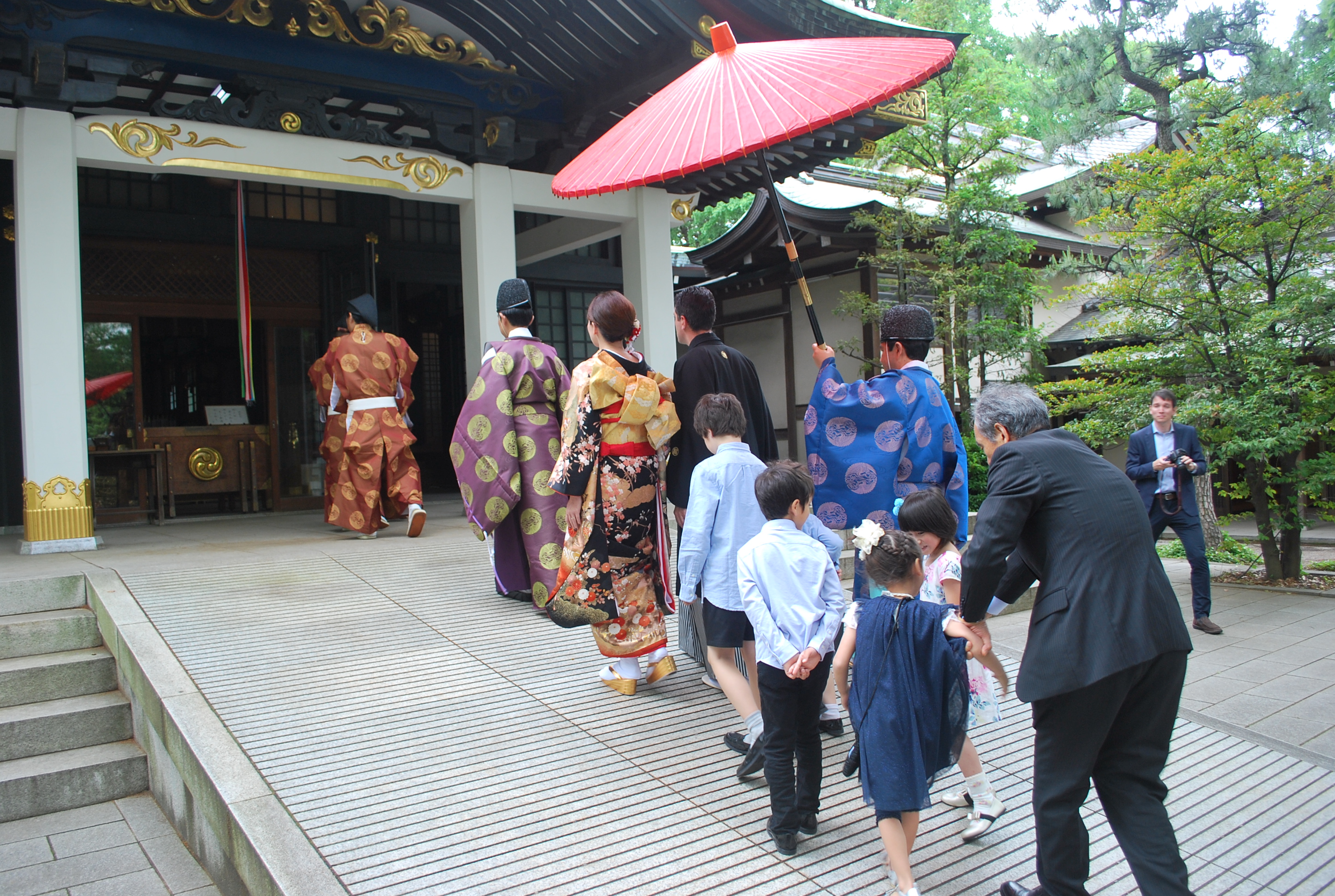 また、和服を着ての儀式を一度はやってみたいという思い、そして、子供たち同伴の結婚式をしたいという思い、また、”ママ”がフランスから来日するということもあり、ではではこのタイミングにあまり人様には知らせず、身内だけで執り行おう!ということになり、今日、神前式をすることになったのでした。