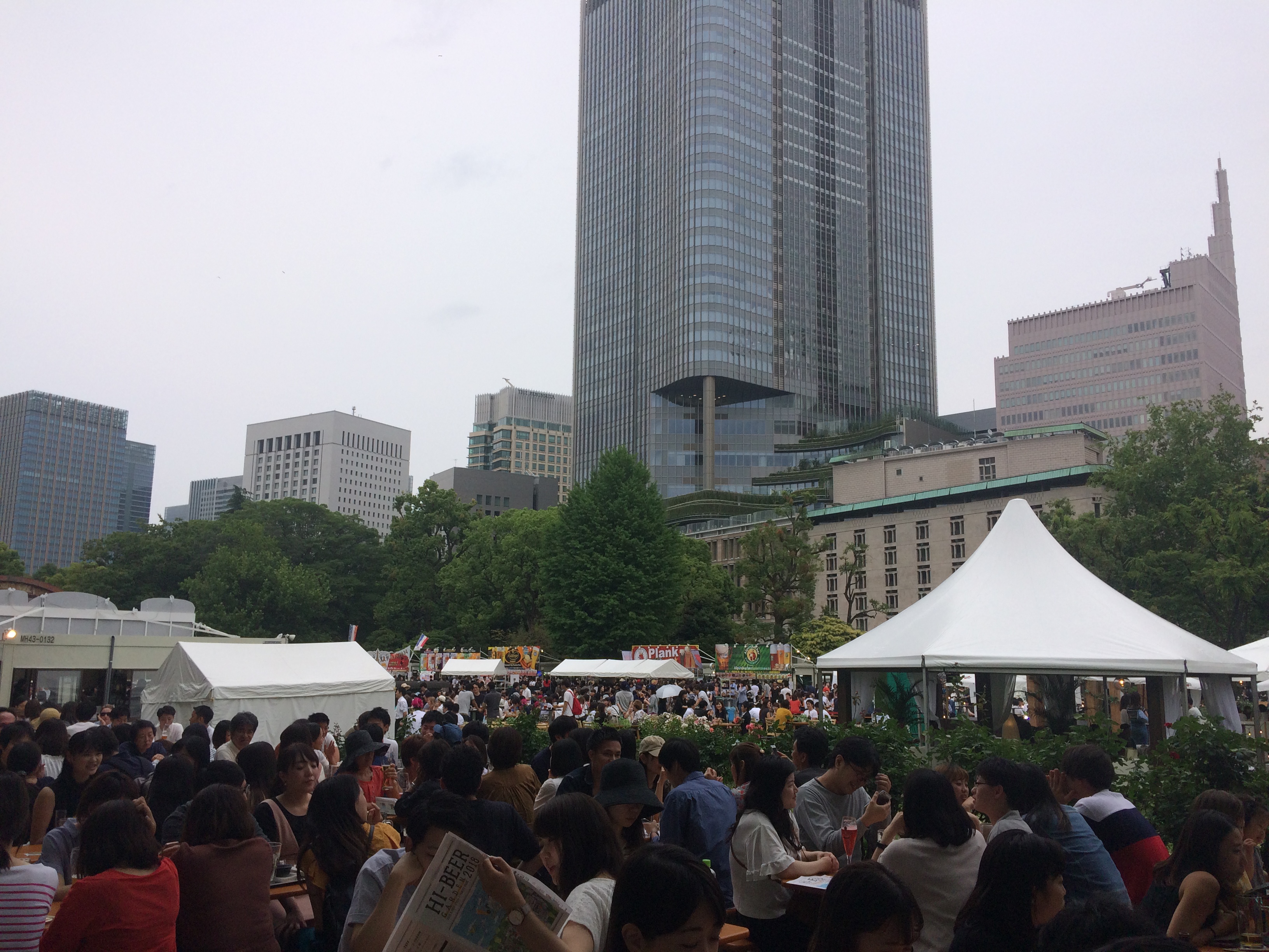 ミッドタウン日比谷のスカイガーデンを見せたかったこともあり、午後一の即興で行ったのですが、なんと日比谷公園は、ビアガーデンのお祭りの真っ最中でした(明日までのようです!)!!