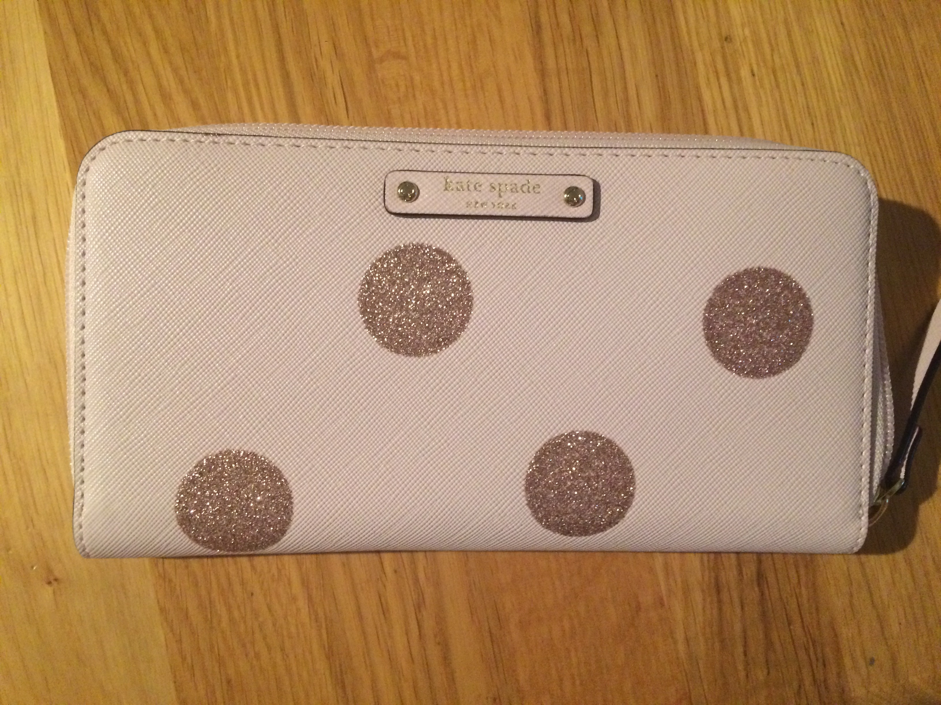 Kate Spadeのピンクのラメ入り水玉模様の入った長財布。