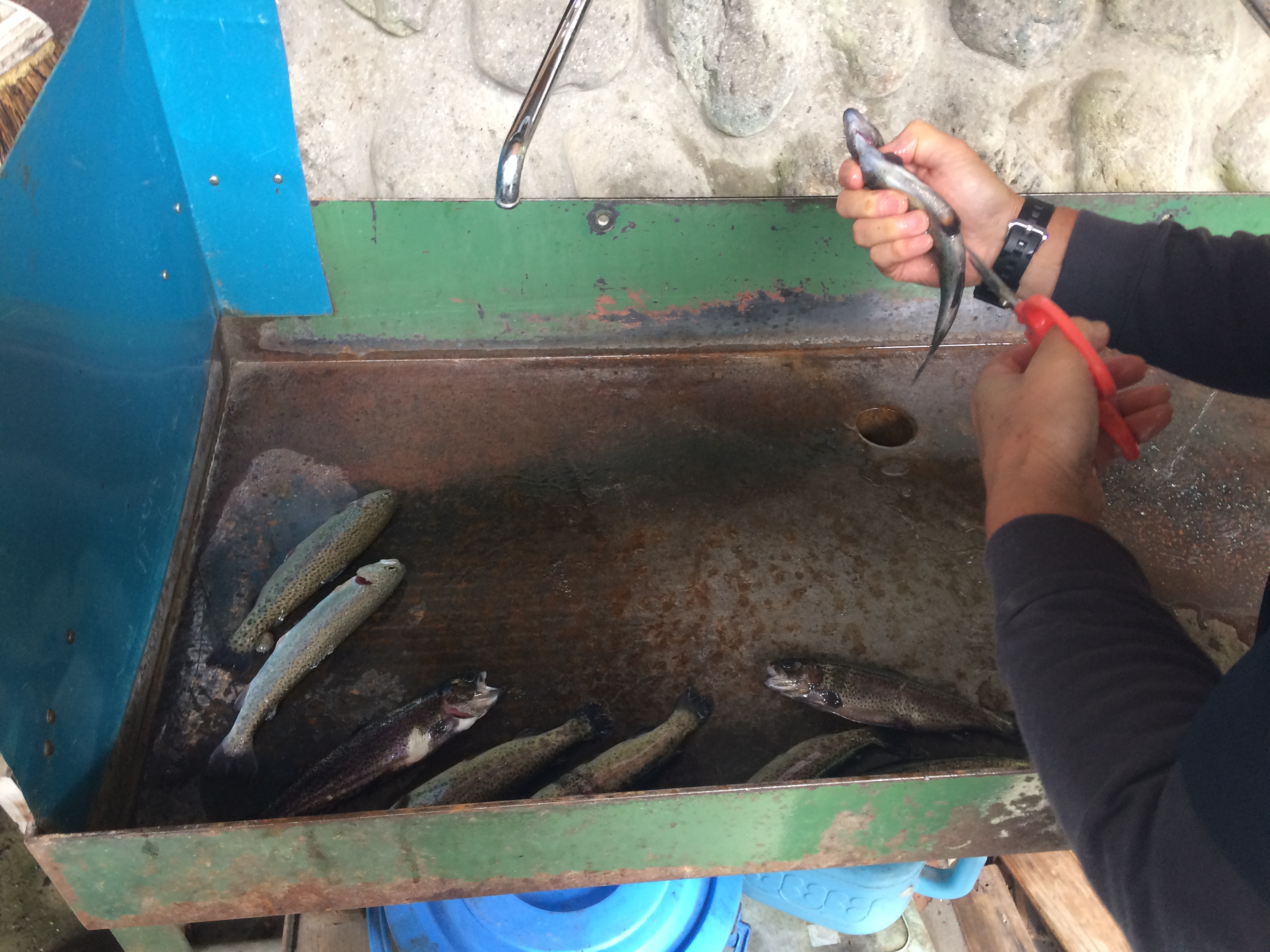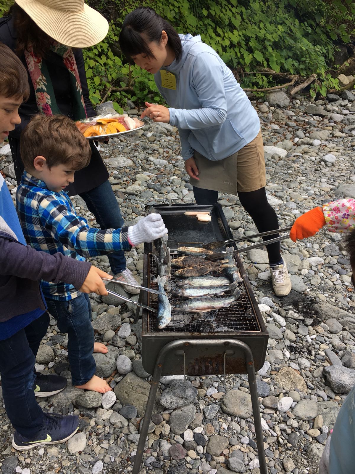 我が家は、寛大なお友達ファミリーに収穫をお裾分けしていただき、お店の方に内臓を取り除いてもらい、一人一匹、塩漬けして焼かれたマスをいただくことができました(笑)。