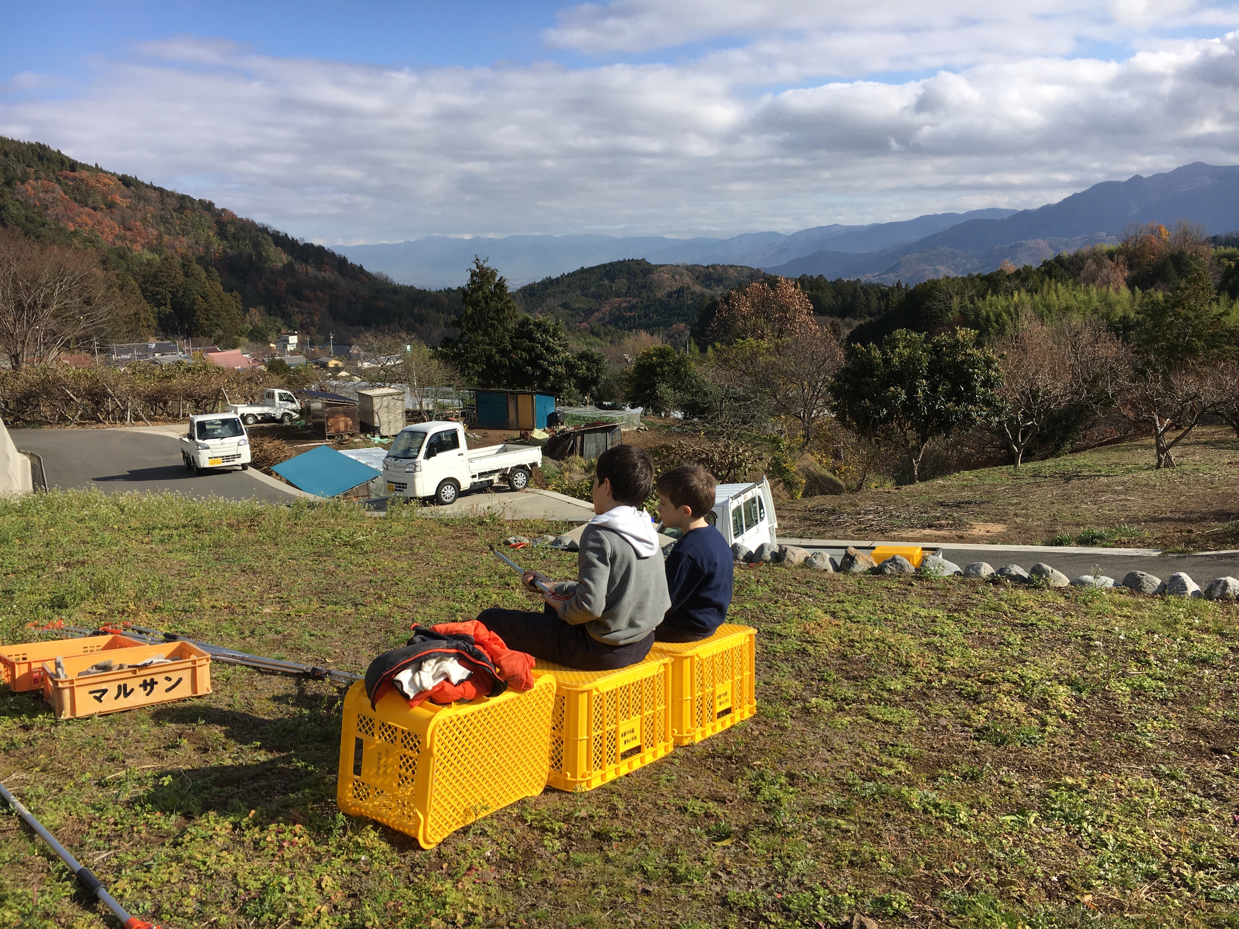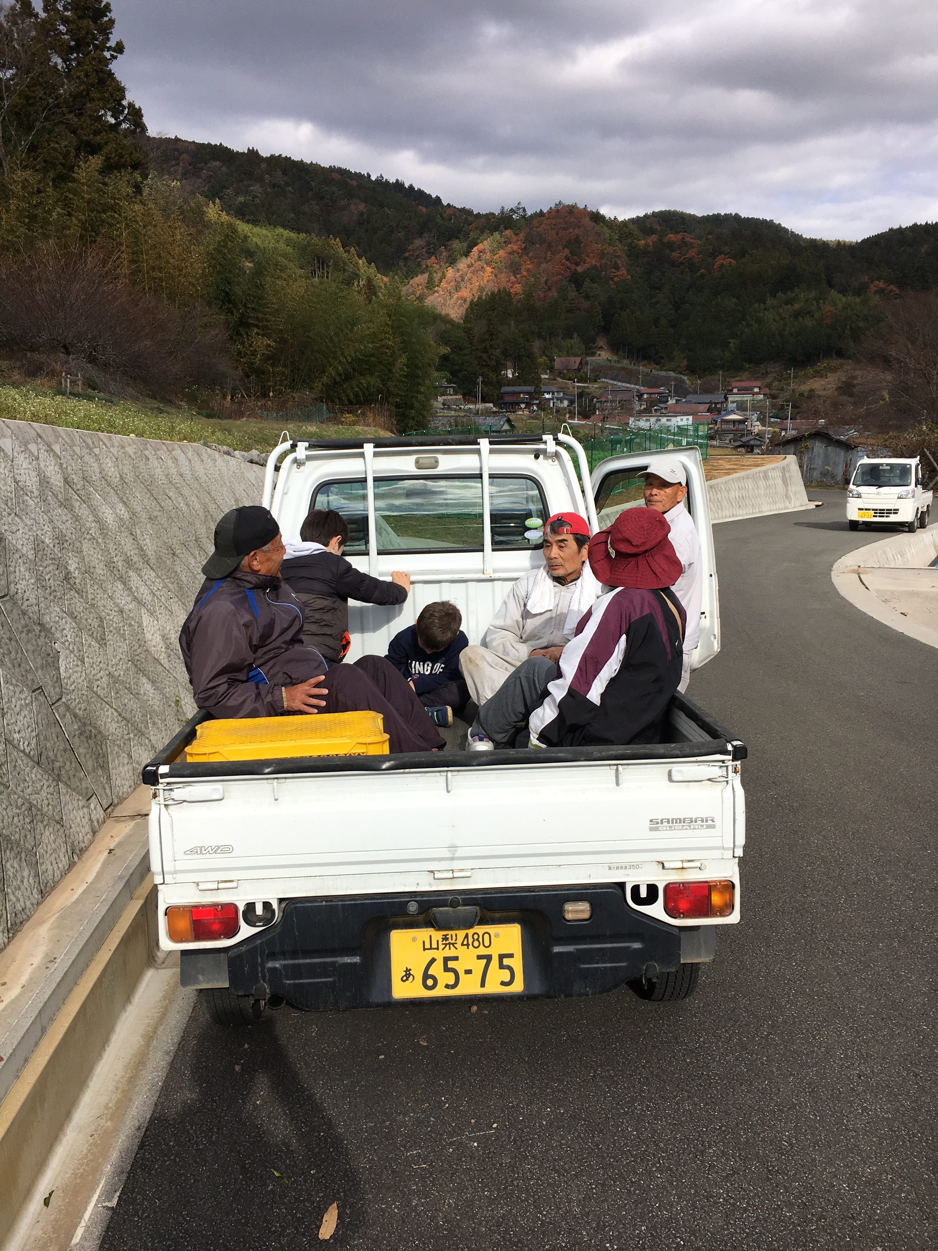 山の中にある集合場所からトラクターの荷台に乗り、柚子畑に着きました。