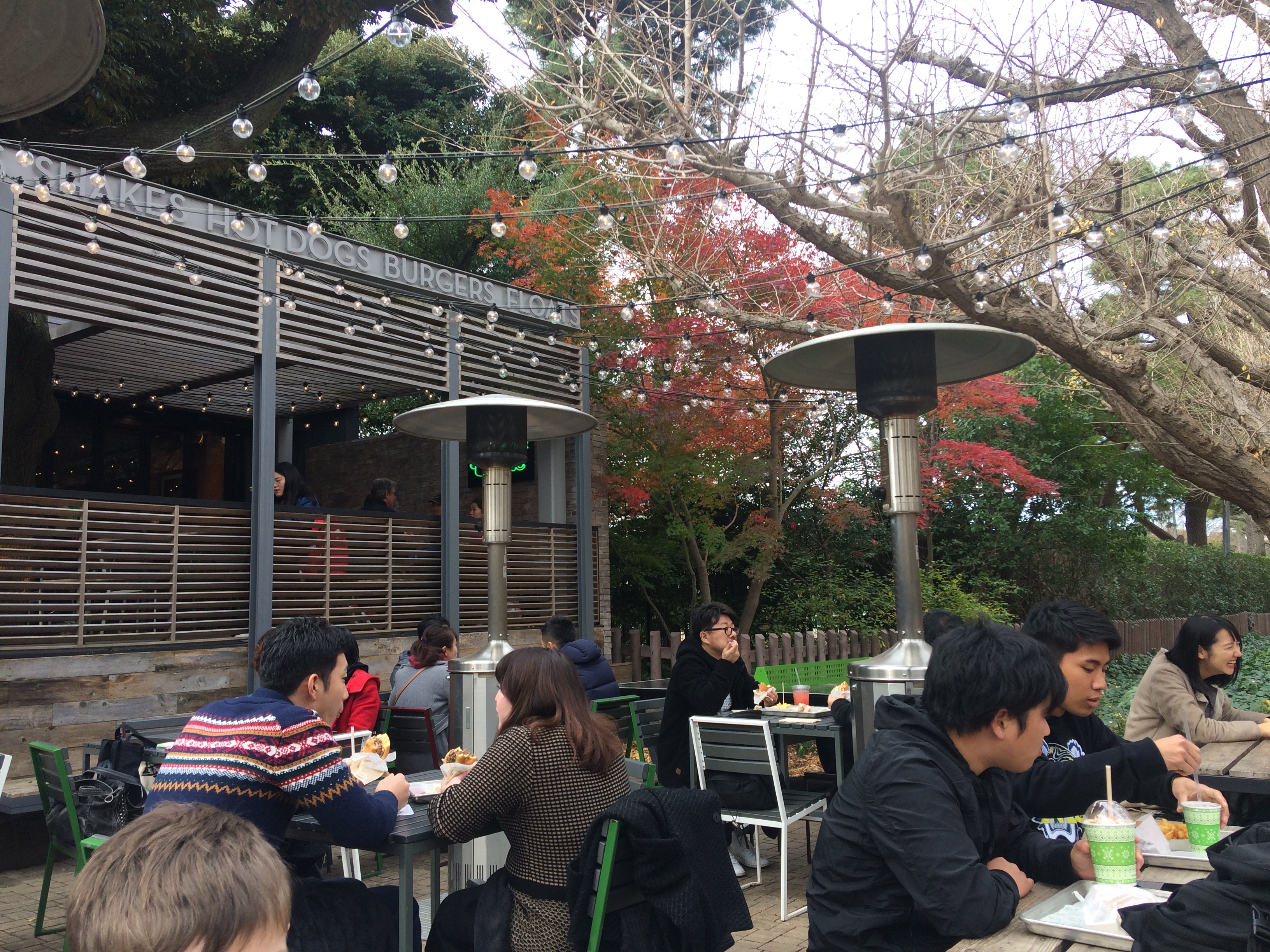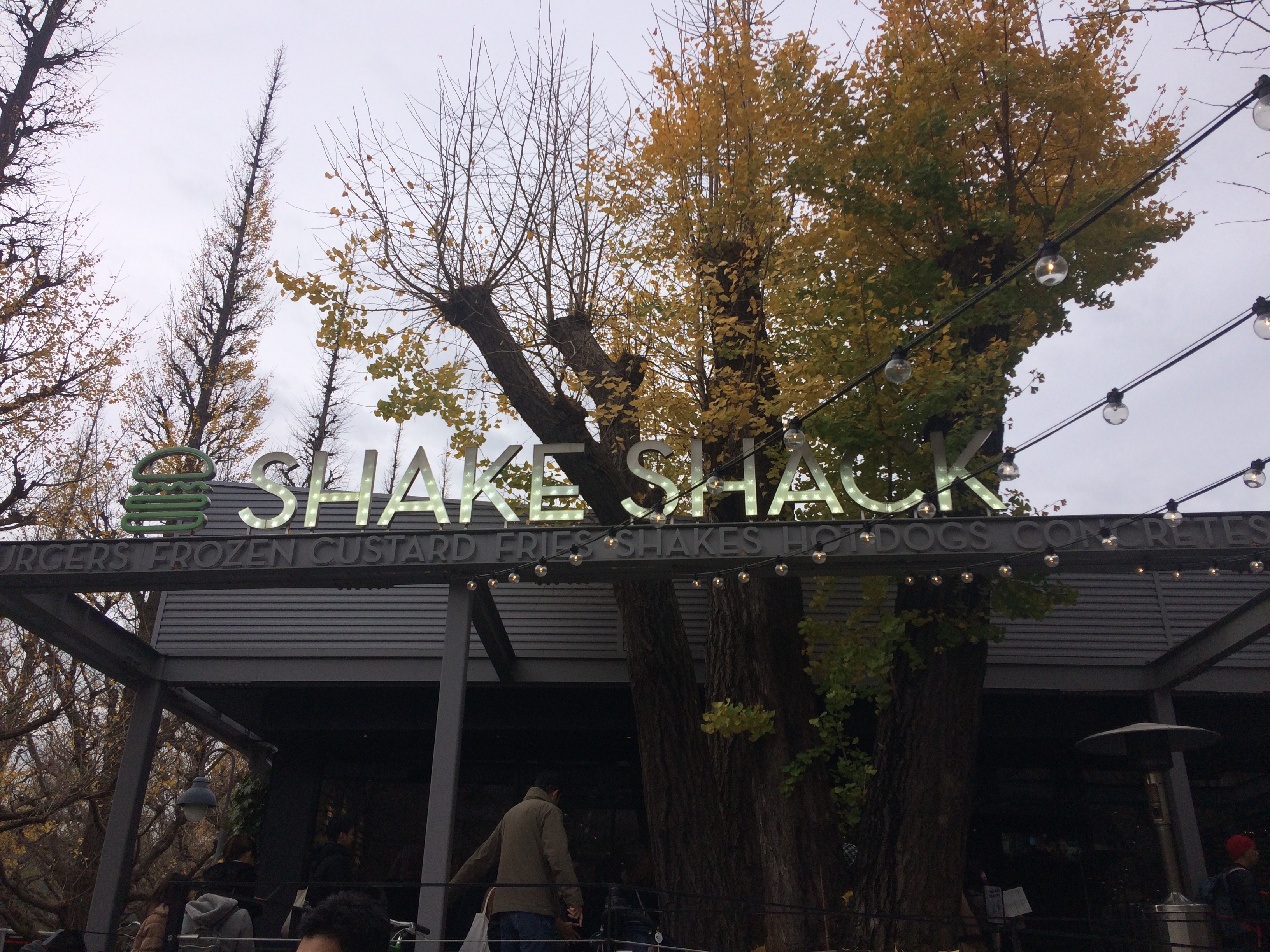 ママンは子供たちを引き連れて応援に行き、夫のゴールを見送ってから、家族でイチョウ並木にあるバーガー屋さん、SHAKE SHACKに行って来ました。