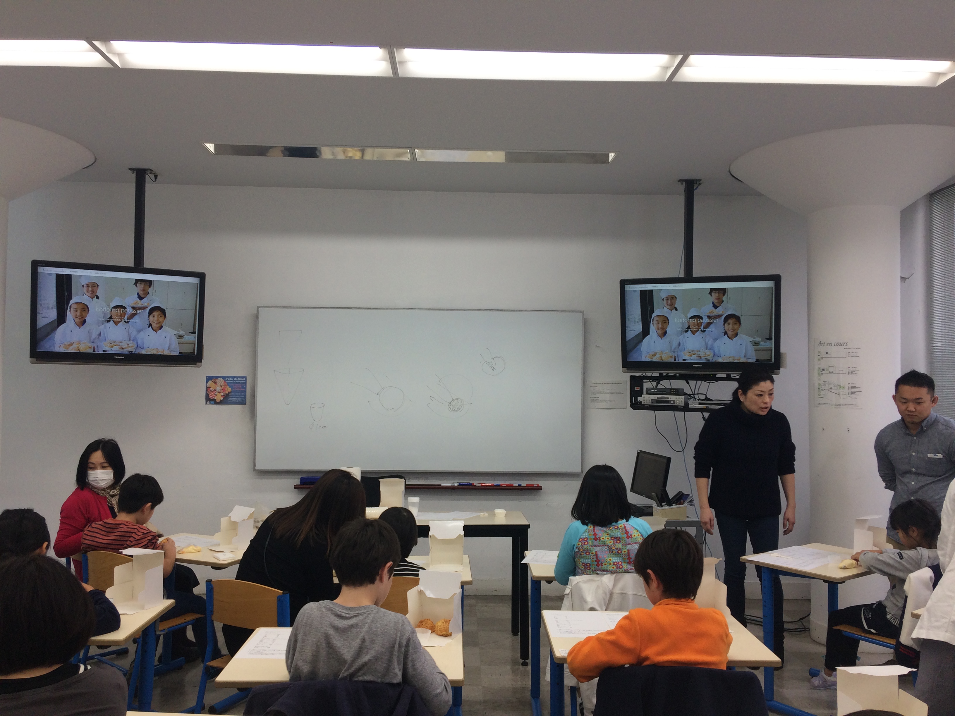 子供たちがシュークリームのアトリエに参加している間、お友達とママンは彼らのレッスンを見学したり、外でおしゃべりをしたり。