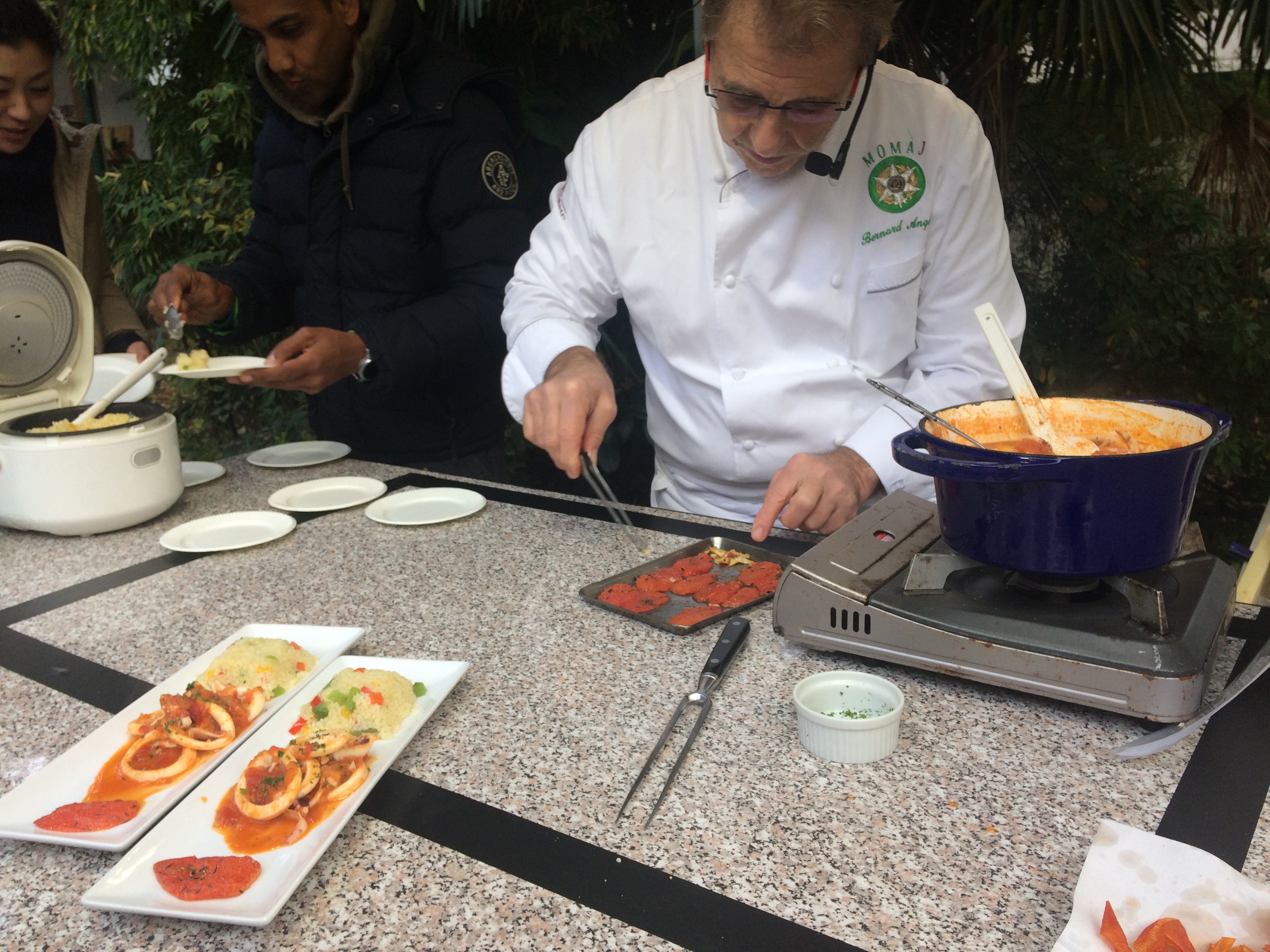 アトリエ終了のタイミングで、お庭ではフランス料理(南西地方の)のデモンストレーションがあったので、とても楽しく見させていただきました。