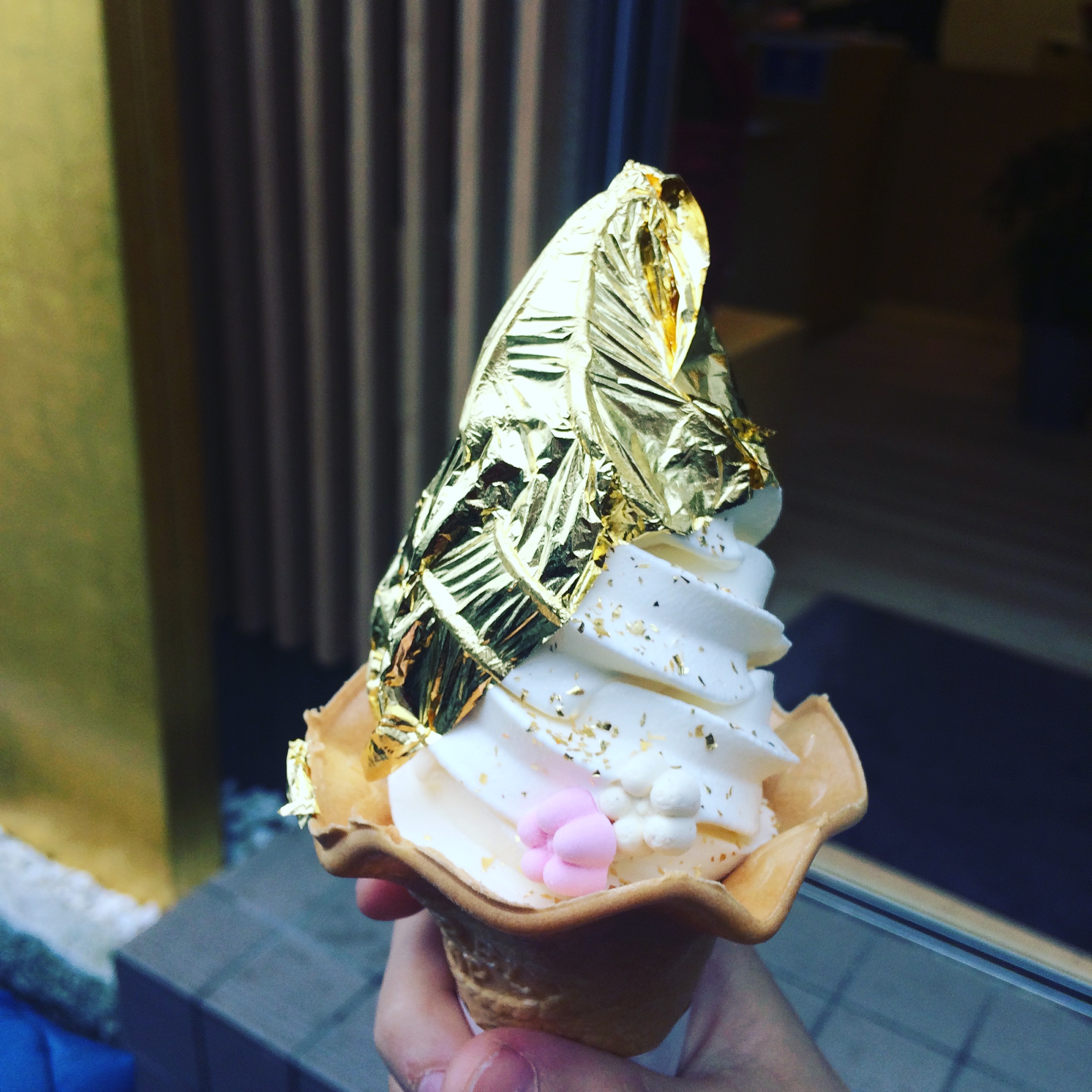 金箔に覆われたソフトクリームなので、そのお値段が高いのか安いのか見当がつきませんが、普通のソフトクリームの発想だと、891円とは何と高級なソフト?!という印象です。
